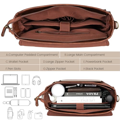 【Perfect Size for Daily Use】 Measuring 16″L x 5.5″W x 12″H and weighing just 2.8lbs, this 15.6-inch laptop messenger bag is perfect for your daily commute, business meetings, or travel. With its thoughtful design that balances practicality and a vintage aesthetic, it serves as an excellent work bag, business briefcase, laptop bag, satchel, and shoulder bag—keeping you organized and stylish wherever you go.
